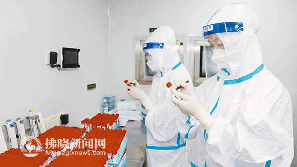 脫去“戰袍”的“大白”們在互相加油鼓勁