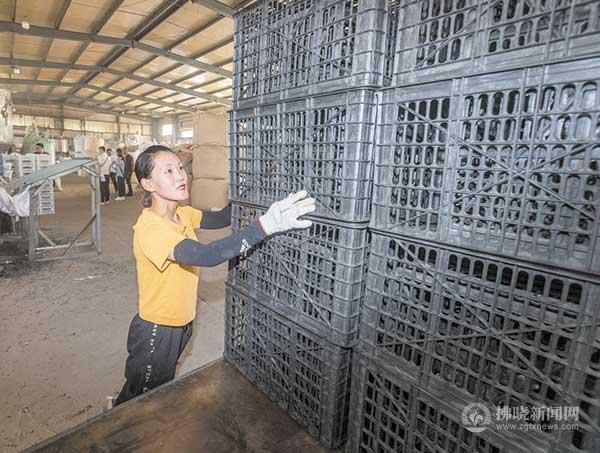 “這里活不重,收入也不低,在家門(mén)口就業(yè),照顧家庭和掙錢(qián)兩不耽誤。”在位于侯口村農(nóng)民工創(chuàng)業(yè)產(chǎn)業(yè)園碭山縣萬(wàn)順泡沫制品有限公司的生產(chǎn)車(chē)間里,村民唐媛媛正在把剛生產(chǎn)出的水果周轉(zhuǎn)箱打捆裝車(chē)。她告訴記者,家里梨園的早熟梨7月份就賣(mài)完了,暫時(shí)不需要管理,趁著農(nóng)閑時(shí)候來(lái)廠里務(wù)工,一月有四五千元的收入。