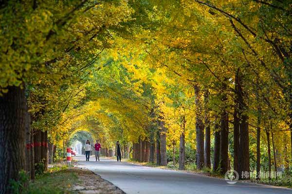 金秋時(shí)節(jié),碭山縣數(shù)十萬畝銀杏樹披上金裝,黃葉在秋日的陽光照耀下熠熠生輝,陣陣秋風(fēng)吹過,原野仿佛一幅色彩絢麗的油畫,絕美的秋色吸引了眾多游客在銀杏林里休閑觀光。漫步在林中,滿地金黃的銀杏葉燦爛無比,如同給大地鋪了一層松軟的黃地毯,人在林中走,如在畫中游。慕名而來的游客和攝影愛好者駐足觀賞,并用鏡頭記錄下這美麗的景色。