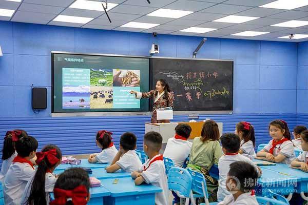 港利小學內,措美縣教師才旺白珍帶領同學們了解西藏,了解措美。