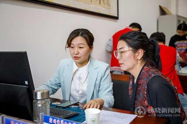 宿州市第九中學的王曉娟老師和來自措美縣的教師普布卓瑪一起討論問題。