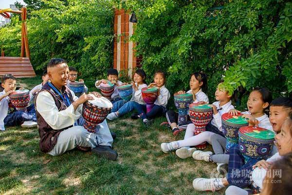 埇橋區第二幼兒園內,措美縣教師索朗次仁帶孩子們學習非洲鼓。