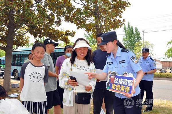6月9日下午,碭山縣公安局將反詐陣地前移,民警深入到轄區高考考點,在等候區對考生家長開展“考后防詐騙”專題宣傳,引導家長和考生提高警惕,增強防范意識。圖為民警正在進行反詐知識宣傳。 特約攝影 張廣星