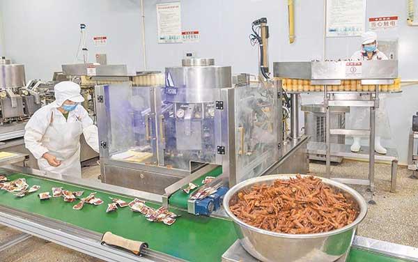 徽香源食品有限公司生產車間工人在分裝雞爪。