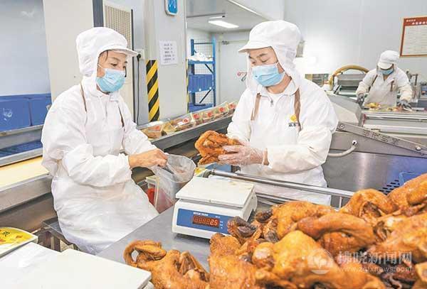 徽香源食品有限公司生產車間工人在檢測燒雞品質。
