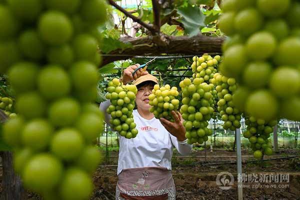 玄廟鎮古黃新村果農采摘陽光玫瑰葡萄。