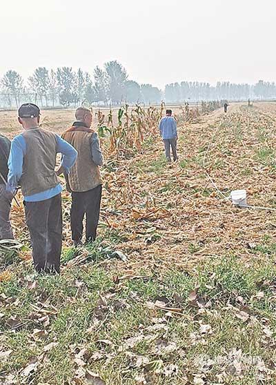 村委會工作組在丈量土地。