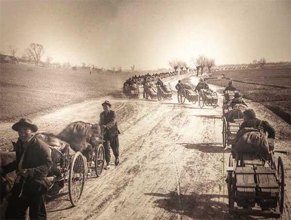 支前架子車隊把彈藥送往前線。