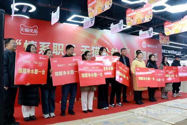 活動現場,天貓優品宿州旗艦店捐贈給埇橋區總工會價值20余萬元的物資,包括50臺凈水器、10臺洗衣機、150個電飯煲和電磁爐等,用于幫扶全區困難職工和配備工會驛站、職工活動陣地。