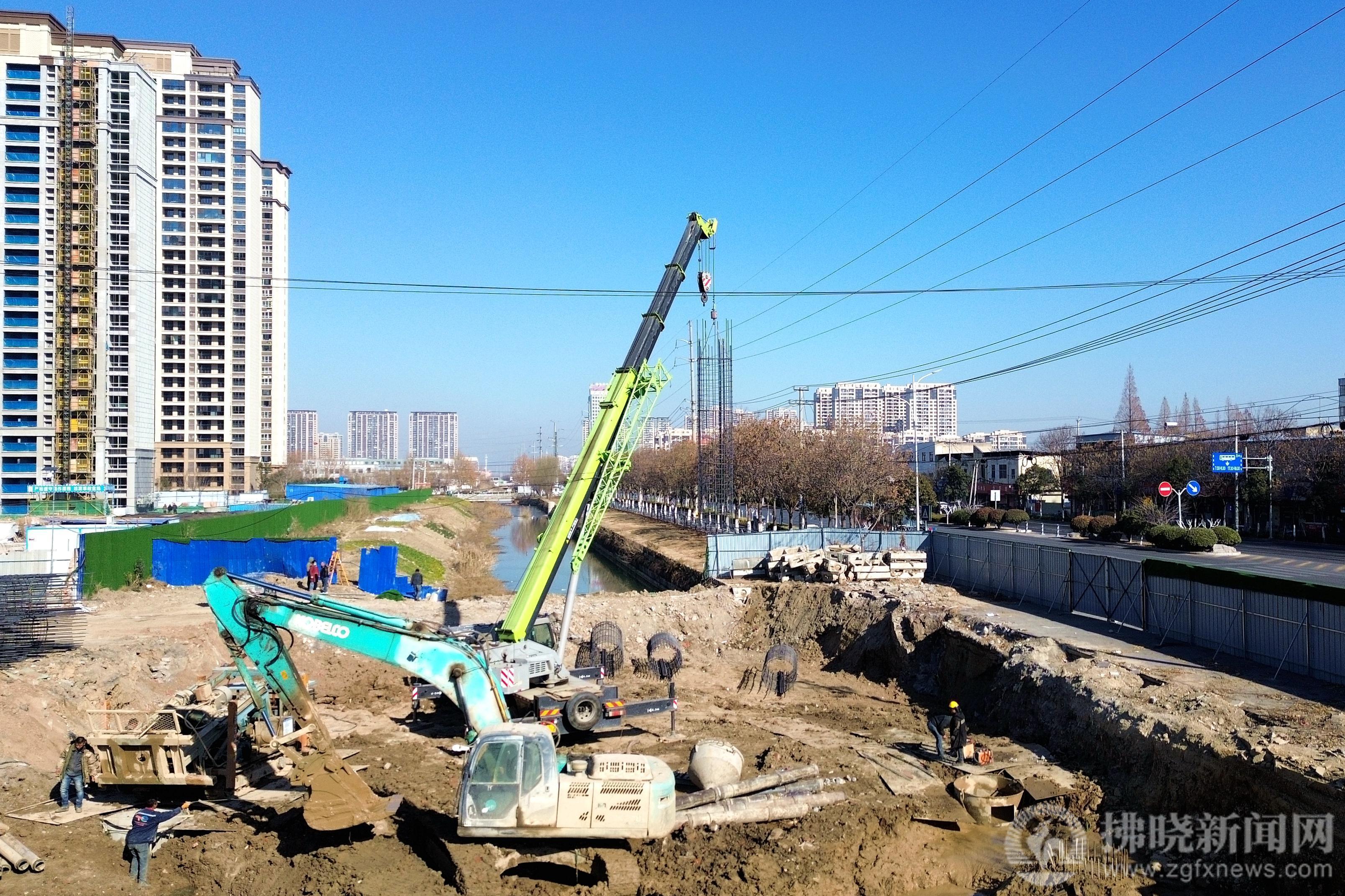 1月16日,宿城汴陽(yáng)二路東跨匯源大溝橋梁正在加緊施工。