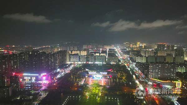 航拍夜色璀璨的美麗碭城。