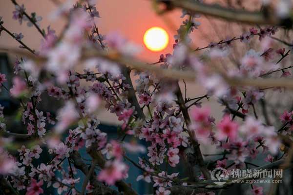 粉花與落日相映,勾勒出柔美浪漫的鄉村春色。