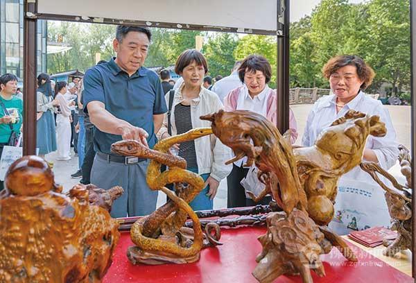 根雕藝術(shù)品引來(lái)游客駐足觀看。