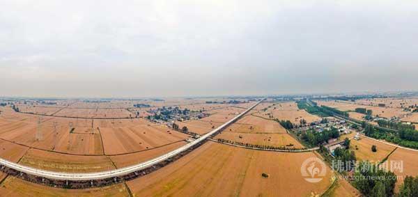 5月23日,航拍埇橋區(qū)206國道、符離大道沿線的麥田景觀,金黃的麥浪一望無垠。當下小麥陸續(xù)進入成熟期,符離鎮(zhèn)梁套村已有小面積小麥開鐮收割,預計本月底,全市小麥將自南向北開始大面積收割。記者 馬峰 蘇洋 攝