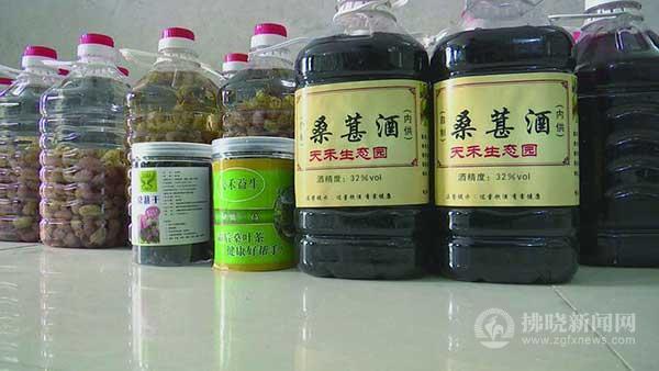 為了延長桑葚產業鏈,提升產品附加值,天禾生態園還開發了桑葚酒、桑葚果干、桑葉茶等系列產品。