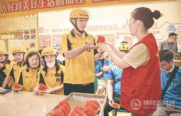 埇橋區西關街道吾悅商圈暖“蜂”歸宿黨群驛站開展送清涼活動。